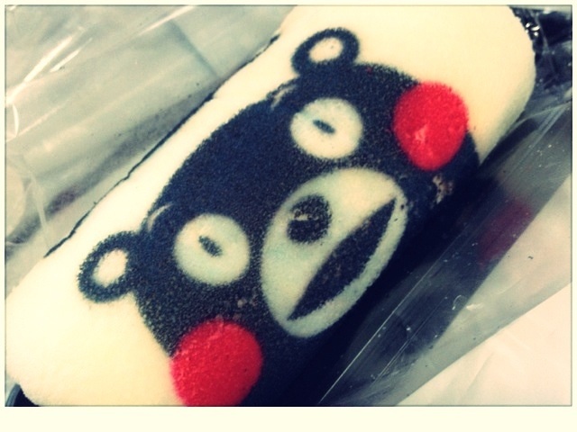 この前お母さんが旅行に行ったときに買ってきてた、くまもんロールケーキ。顔がまんま入ってる。(笑)
